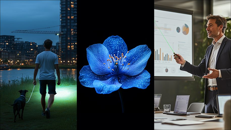 1300lm Light up when dog walking at night to make them safe.🧼Use Class 3R UV light to find the bacteria on puppy's body to keep them healthy.🥰 Play with puppy's with green laser to make them happy. 🌏 Illuminate Your Word, illuminate animal's world🐱 Olight is on the road.
