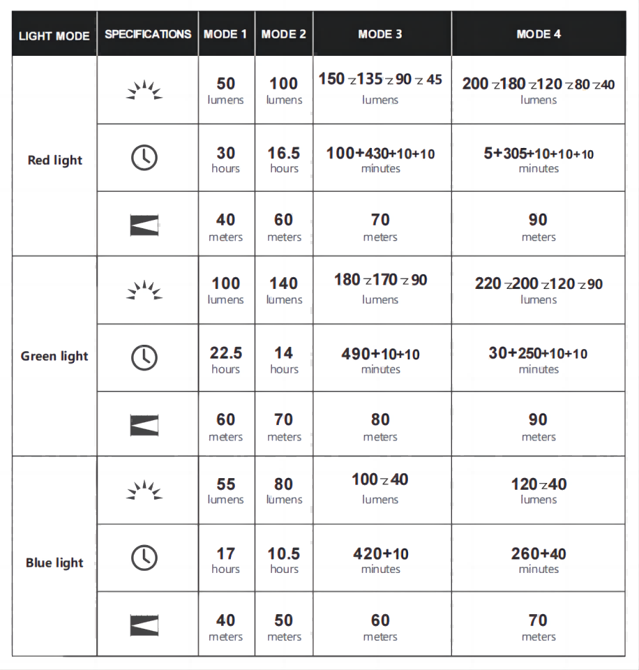 The inclusion of three RGB color LEDs is one of the most significant advantages of the Marauder Mini dual beam bright flashlight. They are uniformly distributed around the lens, offering various benefits for different situations. The red light flashlight helps preserve night vision and does not attract insects, while the green light flashlight provides optimal visibility in low-light situations without alerting game animals. Blue light can reveal stains or fluids that may be difficult to see in normal lighting conditions. The RGB LEDs offer only flood light and their brightness is also adjustable.